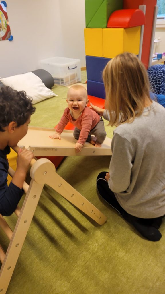 In unserem Toberaum könnt ihr mit euren Kindern toben, hüpfen, balancieren und rutschen! So könnt ihr euch mit euren Kindern so richtig auspowern und ihr bekommt Gelegenheit, euch mit anderen Eltern zu unterhalten. Bei schönem Wetter könnt ihr auch unseren großen Garten nutzen – mit noch mehr Spielmöglichkeiten!